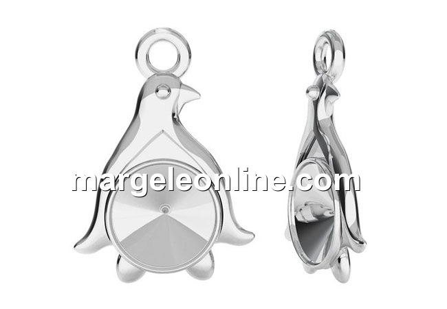 Baza pandantiv argint 925, Pinguin, pentru rivoli 6mm - x1