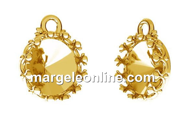 Baza pandantiv pentru rivoli de 8mm , material: accesorii bijuterii argint 925 placat cu aur, marcat, dimensiune totala: 13x10.5mm. Pretul se refera la 1 bucata. Produsul din imagine este cu titlu de prezentare si poate fi achizitionat din categoria Swarovski rivoli sau fancy rivoli.