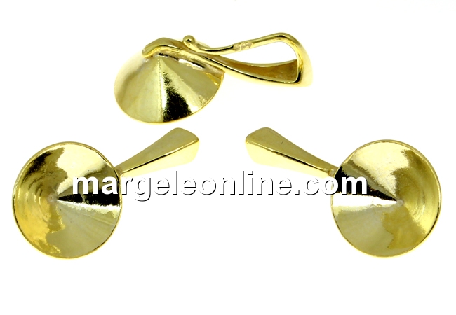 Baza pandantiv pentru chaton 1088 de 10mm , material: accesorii bijuterii argint 925 placat cu aur, marcat, dimensiune: 18x10mm. Pretul se refera la 1 bucata.