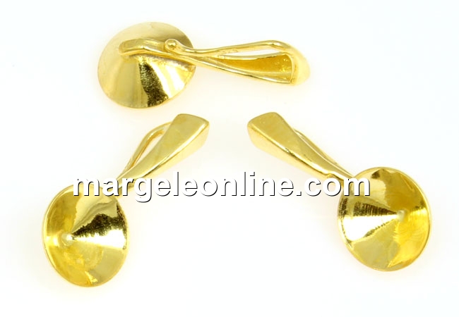 Baza pandantiv pentru chaton 7mm , material: accesorii bijuterii argint 925 placat cu aur, marcat, dimensiune: 17.5x8mm. Pretul se refera la 1 bucata.