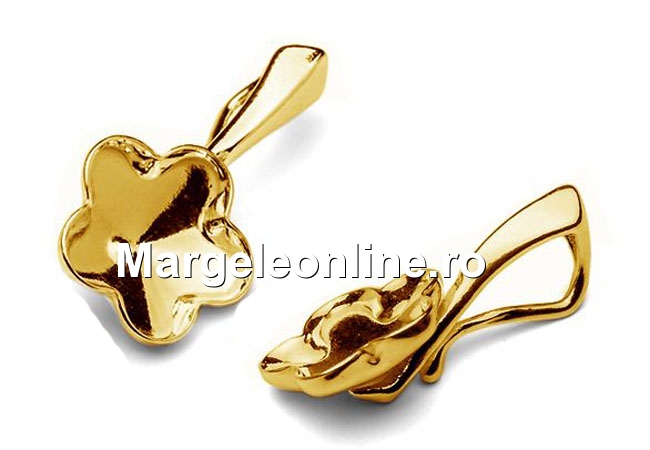 Baza pandantiv pentru floare Swarovski 4744 10mm, material: accesorii bijuterii argint 925 placat cu aur, marcat, dimensiune: 18.5x10.5mm. Pretul se refera la 1 bucata.
