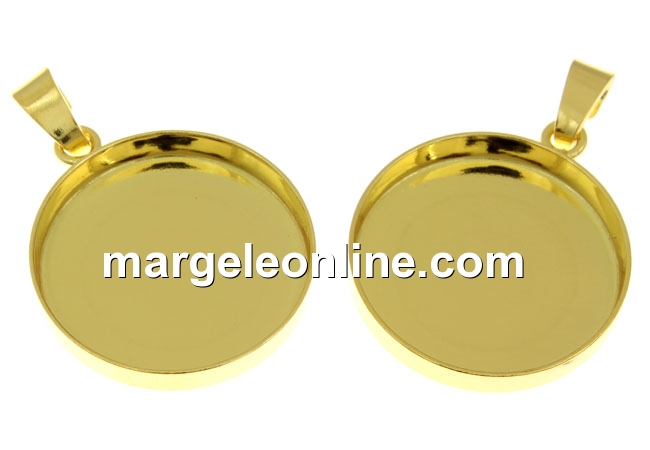 Baza pandantiv cu sistem prindere inclus , material: accesorii bijuterii argint 925 placat cu aur, marcat, cu platou pentru cabochon de 20mm. Pretul se refera la 1 bucata.