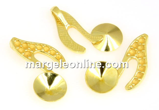 Baza pandantiv pentru rivoli 8mm : accesorii bijuterii argint 925 placat cu aur, dimensiune: 20.5x15mm. Pretul se refera la 1 bucata