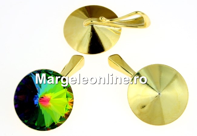 Baza pandantiv pentru rivoli de 12mm, material: accesorii bijuterii argint 925 placat cu aur, marcat, dimensiune: 20x12mm. Pretul se refera la 1 bucata. Produsul din imagine este cu titlu de prezentare si poate fi achizitionat din categoria Swarovski elements.