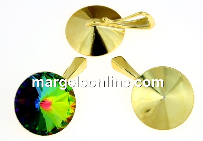 Baza pandantiv pentru rivoli de 16-18mm, material: accesorii bijuterii argint 925 placat cu aur, marcat, dimensiune: 22x16mm. Pretul se refera la 1 bucata. Produsul din imagine este cu titlu de prezentare si poate fi achizitionat din categoria Swarovski elements.