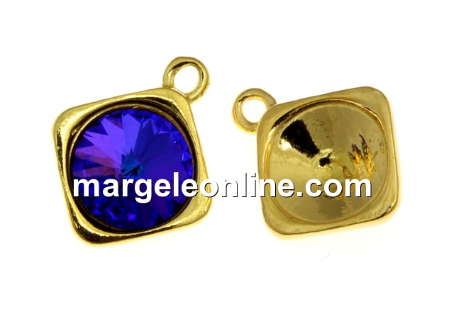Baza pandantiv pentru rivoli de 8mm, argint 925 placat cu aur, dimensiune totala: 15x12mm. Pretul este pentru 1 bucata. Produsul din imagine este cu titlu de prezentare si poate fi achizitionat din categoria Swarovski rivoli sau fancy rivoli.