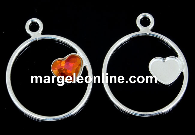 Baza pandantiv argint 925 pt inima Swarovski 6mm, dr- x1