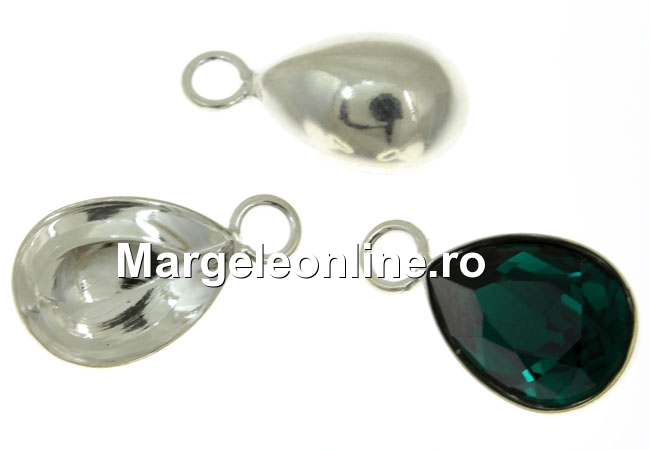 Baza pandantiv pentru fancy picatura Swarovski 10x7mm , material: accesorii bijuterii argint 925, dimensiune totala: 14x8mm. Pretul se refera la 1 bucata. Produsul din imagine este cu titlu de prezentare si poate fi achizitionat din categoria Fancy picatura Swarovski.