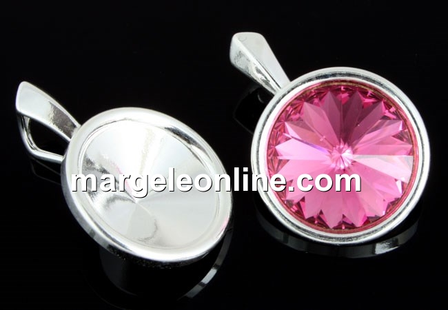 Baza pandantiv pentru rivoli de 12mm: accesorii bijuterii argint 925 marrcat, dimensiune totala: 21x15mm . Pretul este pentru 1 bucata. Produsul din imagine este cu titlu de prezentare si poate fi achizitionat din categoria Rivoli Swarovski elements.