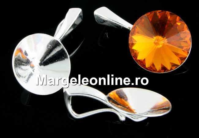 Baza pandantiv pentru rivoli de 16-18mm , material: accesorii bijuterii argint 925, dimensiune: 22x16mm. Pretul se refera la 1 bucata. Produsul din imagine este cu titlu de prezentare si poate fi achizitionat din categoria Swarovski rivoli.