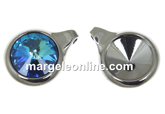 Baza pandantiv pentru Swarovski rivoli 1122, negru gun, dimensiune totala: 21x16mm. Pretul este pentru 1 bucata.