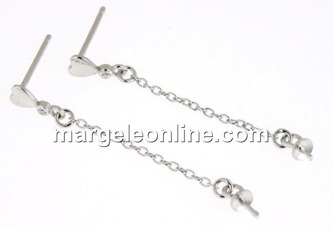 Baza pandantiv sau cercei, inimioara, argint 925 placat cu rodiu - x2
