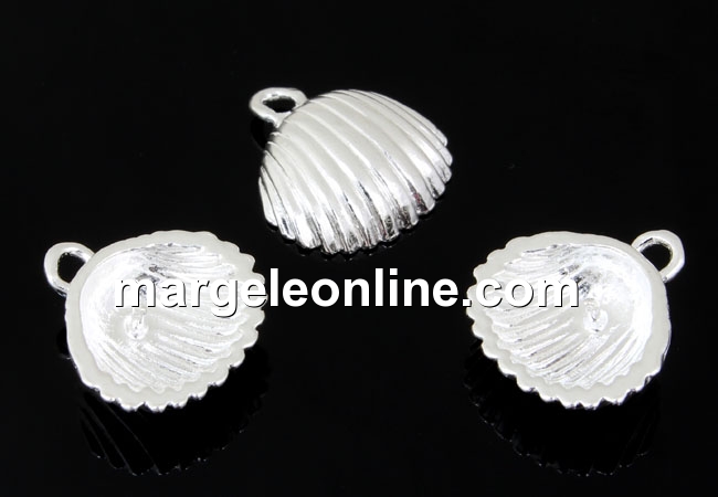 Baza pandantiv scoica pentru perla de 6mm cu un orificiu, argint 925, marcat, dimensiune: 13x12mm. Pretul este pentru 1 bucata.