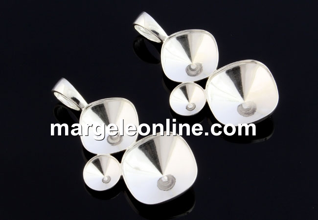 Baza pandantiv cu platou pentru fancy square 4470 sau 4461 de 10mm si 12mm si rivoli 1122 de 6mm, accesorii bijuterii argint 925, marcat, dimensiune totala: 33x16.5mm. Pretul este pentru 1 bucata