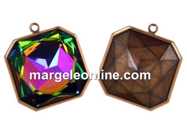 Baza pandantiv pentru Swarovski 4675 de 23x23mm, vintage cupru, dimensiune totala: 29x25mm. Pretul este pentru 1 bucata.