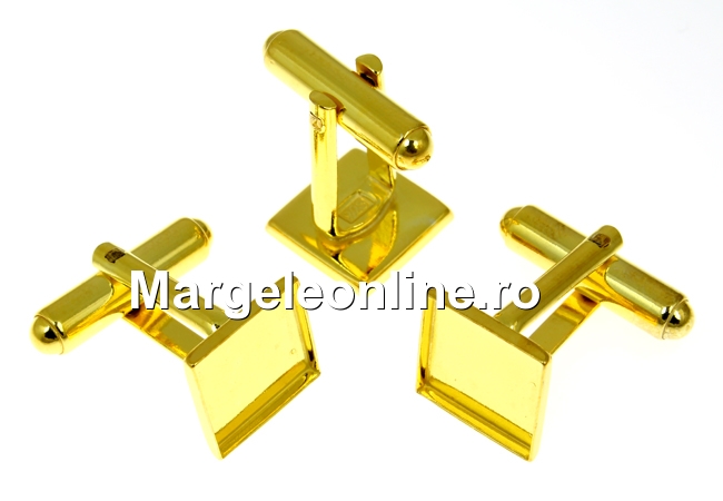 Baze butoni pentru cabochon patrat de 10mm, material: accesorii bijuterii argint 925 placat cu aur, marcat. Pretul este pentru 1 pereche