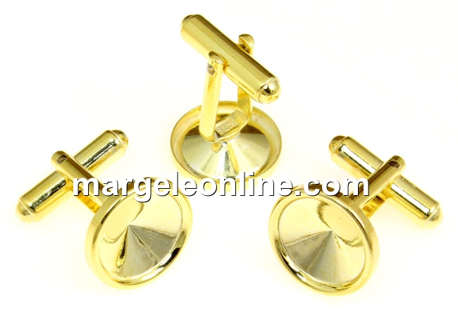 Baze butoni pentru rivoli 12mm, material: argint 925 placat cu aur, marcat, dimensiune totala: 19x15mm. Pretul este pentru 1 pereche.