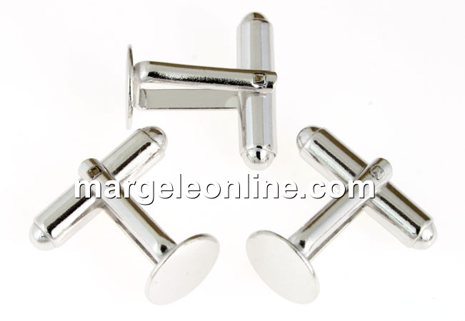 Baze butoni, material: argint 925 placat cu rodiu , marcat, dimensiune totala: 16x17.5mm, platou 9mm pe care poate fi lipit un cabochon din piatra sau cristal mai mare de 9mm. Pretul este pentru 1 pereche.