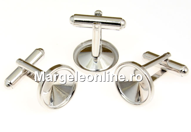 Baze butoni pentru rivoli 12mm, material: argint 925 placat cu rodiu, marcat, dimensiune totala: 19x15mm. Pretul este pentru 1 pereche.
