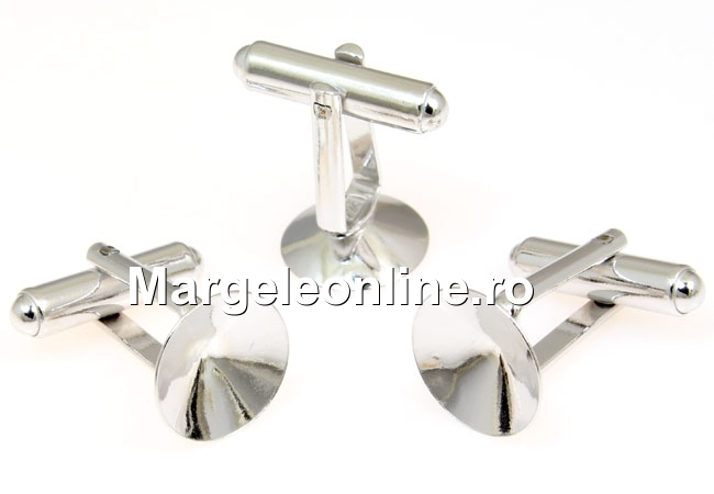 Baze butoni pentru rivoli 12mm, material: argint 925 placat cu rodiu, marcat, dimensiune totala: 19x12mm. Pretul este pentru 1 pereche.