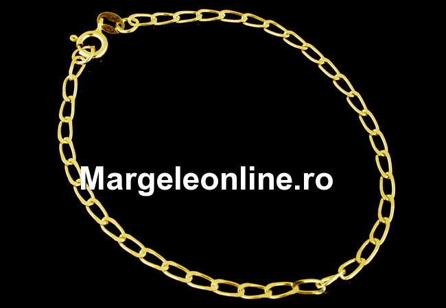 Bratara din argint 925 placat cu aur, marcata, lungime: 19cm, dimensiune zale: 5.6x2.6mm, prevazuta cu incuietoare. Pretul este pentru 1 bucata.
