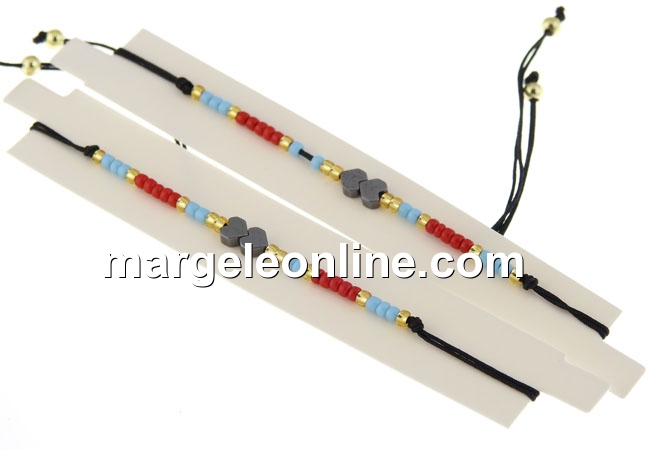 Bratara cod Morse cu 2 inimioare hematit de 4mm, reglabila cu nod culisant. Pretul se refera la 1 bucata.
