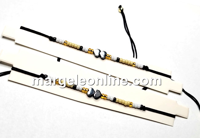 Bratara cod Morse cu 2 inimioare hematit de 4mm, reglabila cu nod culisant. Pretul se refera la 1 bucata.