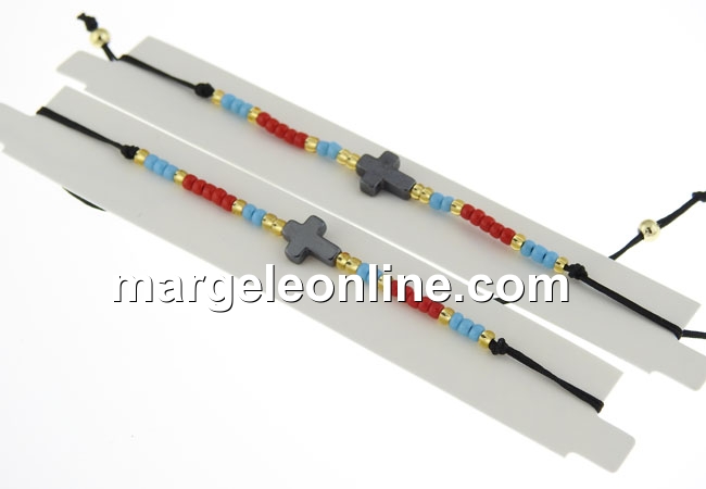 Bratara cod Morse cu cruciulita hematit de 8x6mm, reglabila cu nod culisant. Pretul se refera la 1 bucata.