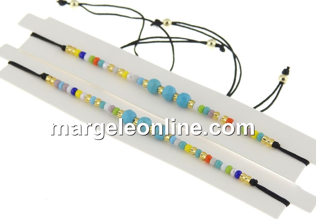 Bratara cod Morse cu margele din turcoaz fatetat de 4mm, reglabila cu nod culisant. Pretul se refera la 1 bucata.