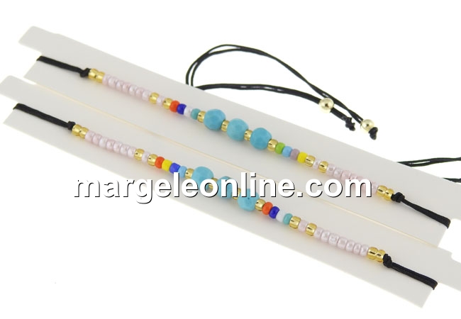 Bratara cod Morse cu margele din turcoaz fatetat de 4mm, reglabila cu nod culisant. Pretul se refera la 1 bucata.