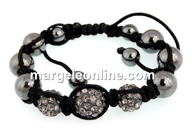 Bratara cu 3 margele shamballa, marime: 10mm si 12mm, 6 margele hematit, marime: 10mm, 4 margele hematit: marime: 8mm, realizata cu nod reglabil culisant. Pretul se refera la 1 bratara.