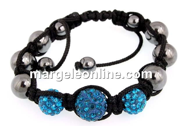 Bratara cu 3 margele shamballa, marime: 10mm si 12mm, 6 margele hematit, marime: 10mm, 4 margele hematit: marime: 8mm, realizata cu nod reglabil culisant. Pretul se refera la 1 bratara.