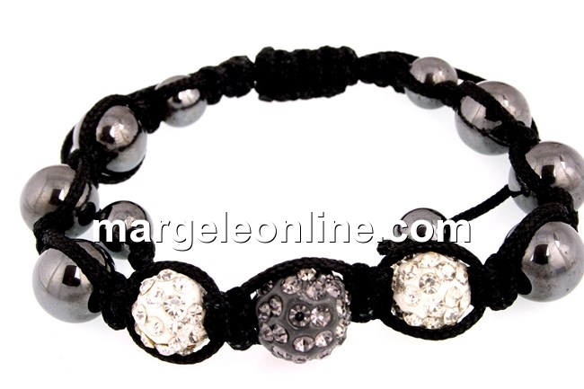 Bratara cu 3 margele shamballa, marime: 10mm si 12mm, 6 margele hematit, marime: 10mm, 4 margele hematit: marime: 8mm, realizata cu nod reglabil culisant. Pretul se refera la 1 bratara.