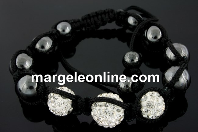 Bratara cu 3 margele shamballa, marime: 10mm si 12mm, 6 margele hematit, marime: 10mm, 4 margele hematit: marime: 8mm, realizata cu nod reglabil culisant. Pretul se refera la 1 bratara.