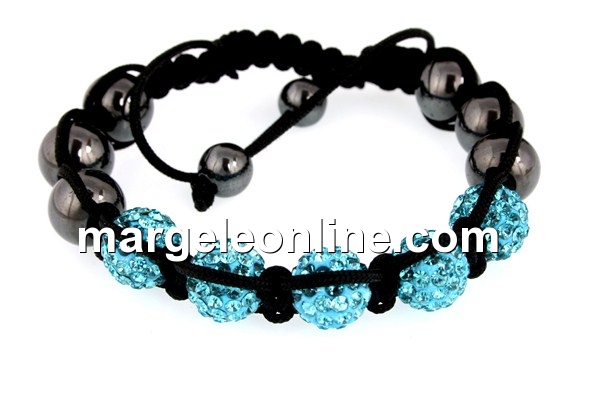 Bratara cu 5 margele shamballa acvamarin, marime: 10mm, 6 margele hematit, marime: 10mm, 2 margele hematit: marime: 8mm, realizata cu nod reglabil culisant. Pretul se refera la 1 bratara.