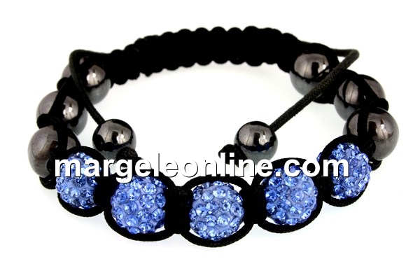 Bratara cu 5 margele shamballa albastru safir, marime: 10mm, 6 margele hematit, marime: 10mm, 2 margele hematit: marime: 8mm, realizata cu nod reglabil culisant. Pretul se refera la 1 bratara.