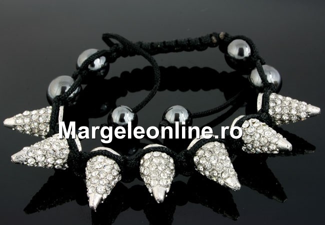 Bratara shamballa cu 7 tinte metal cu cristale, argintiu inchis, marime: 16x9mm, cu 4 margele shamballa hematit de 10mm si 2 margele hematit de 8mm, realizata cu nod reglabil culisant. Pretul se refera la 1 bratara.