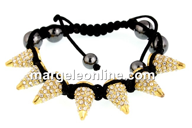 Bratara shamballa cu 7 tinte metal cu cristale, auriu, marime: 16x9mm, cu 4 margele shamballa hematit de 10mm si 2 margele hematit de 8mm, realizata cu nod reglabil culisant. Pretul se refera la 1 bratara.