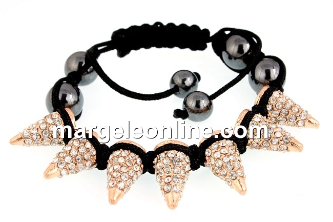 Bratara shamballa cu 7 tinte metal cu cristale, auriu rose, marime: 16x9mm, cu 4 margele shamballa hematit de 10mm si 2 margele hematit de 8mm, realizata cu nod reglabil culisant. Pretul se refera la 1 bratara.