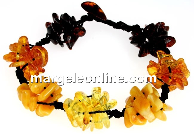 Bratara cu margele chihlimbar natural, chips, 5-10mm