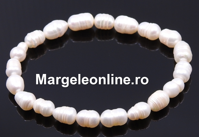Bratara elastica din Perle de cultura naturale, interior standard bratara: cca 56mm, marime perle: 8-10mm, aspect: perlat lucios. Pretul se refera la 1 bratara.