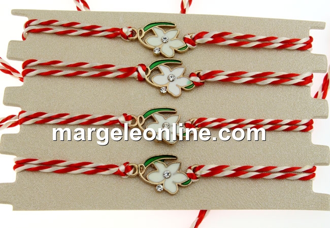 Bratara martisor, floare cu cristale, 21x12mm - x4
