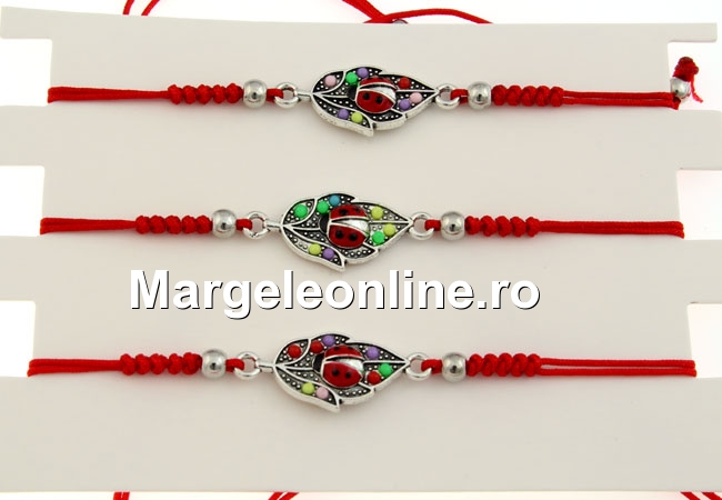 Bratara martisor, frunza cu buburuza, 25x11mm - x3