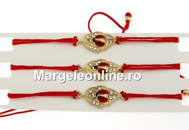 Bratara martisor, frunza cu buburuza, 27x11mm - x3