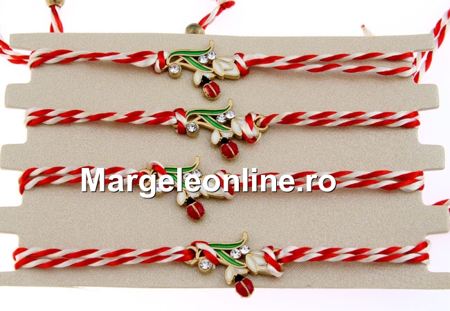 Bratara martisor, ghiocel cu buburuza , 21x14mm - x4