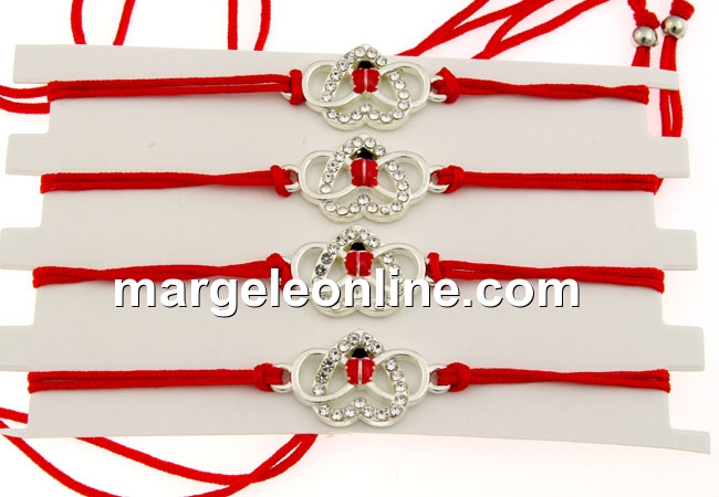 Bratara martisor cu nod culisant, link metalic cu cristale, dimensiune link 24x13mm. Pretul este pentru 4 bratari ca in imagine.