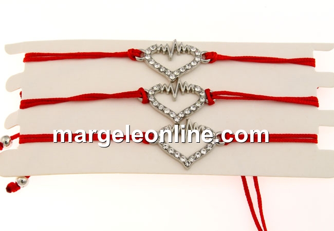 Bratara martisor, inima puls cu cristale, 23x14.5mm - x3