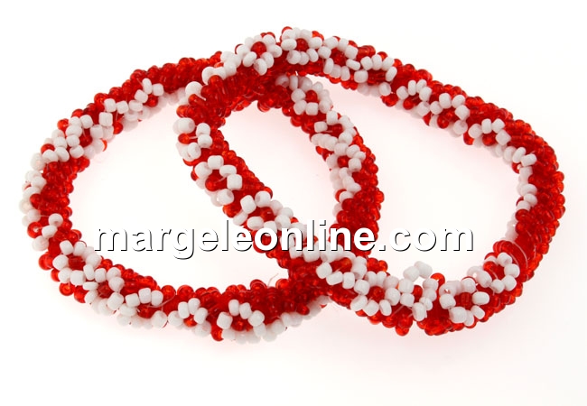Bratara martisor, margele rosu cu alb, suport elastic - x2