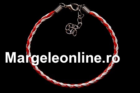 Bratara snur martisor, matase cerata, culoare: alb si rosu, grosime: 4mm, lungime: 18cm plus 4.5cm lantisor prelungitor. Pretul se refera la 2 bucati.