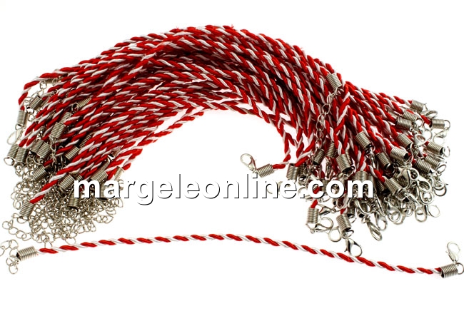 Bratara snur martisor, culoare: alb si rosu, grosime: 3mm, lungime: 20cm. Pretul se refera la 20 bucati.